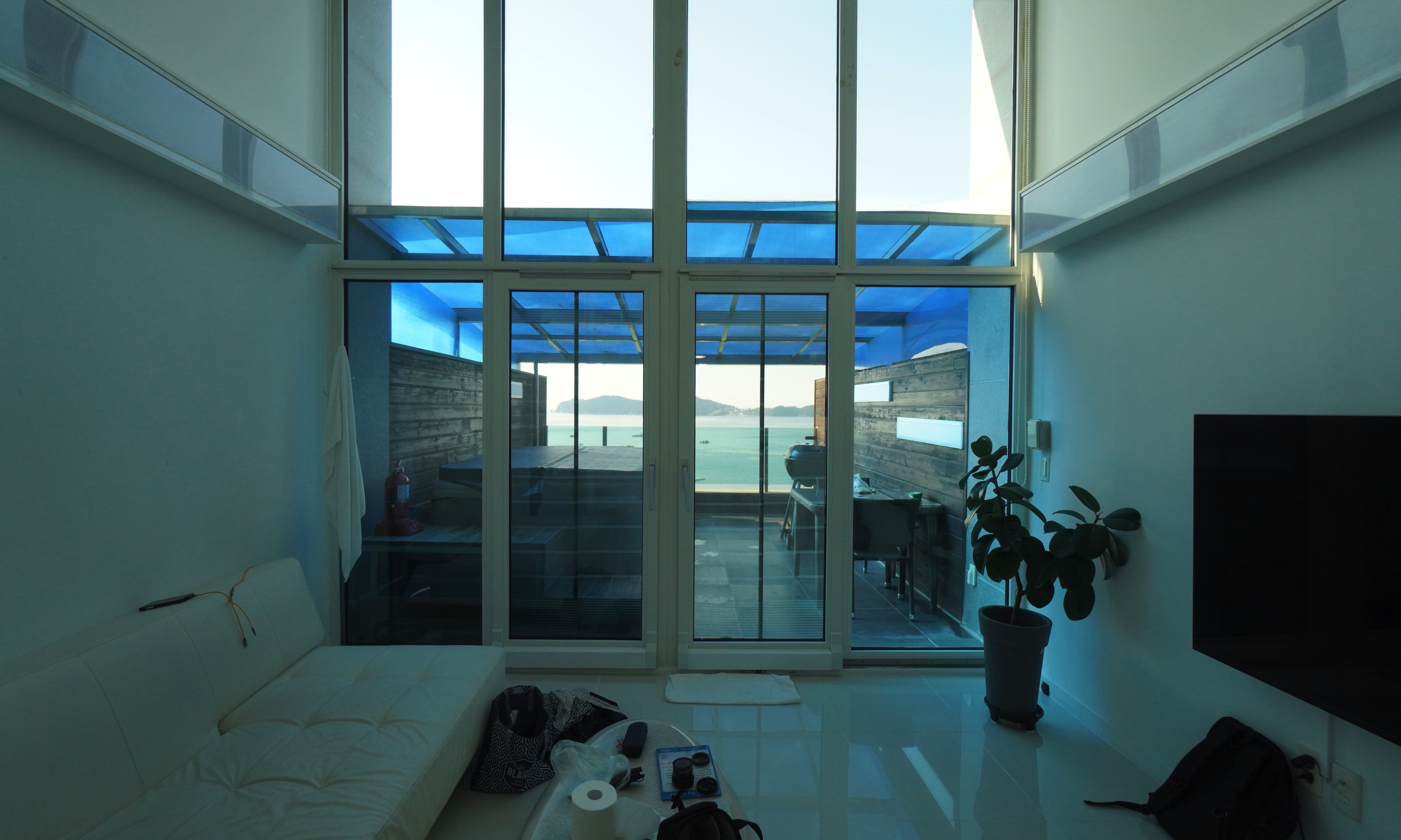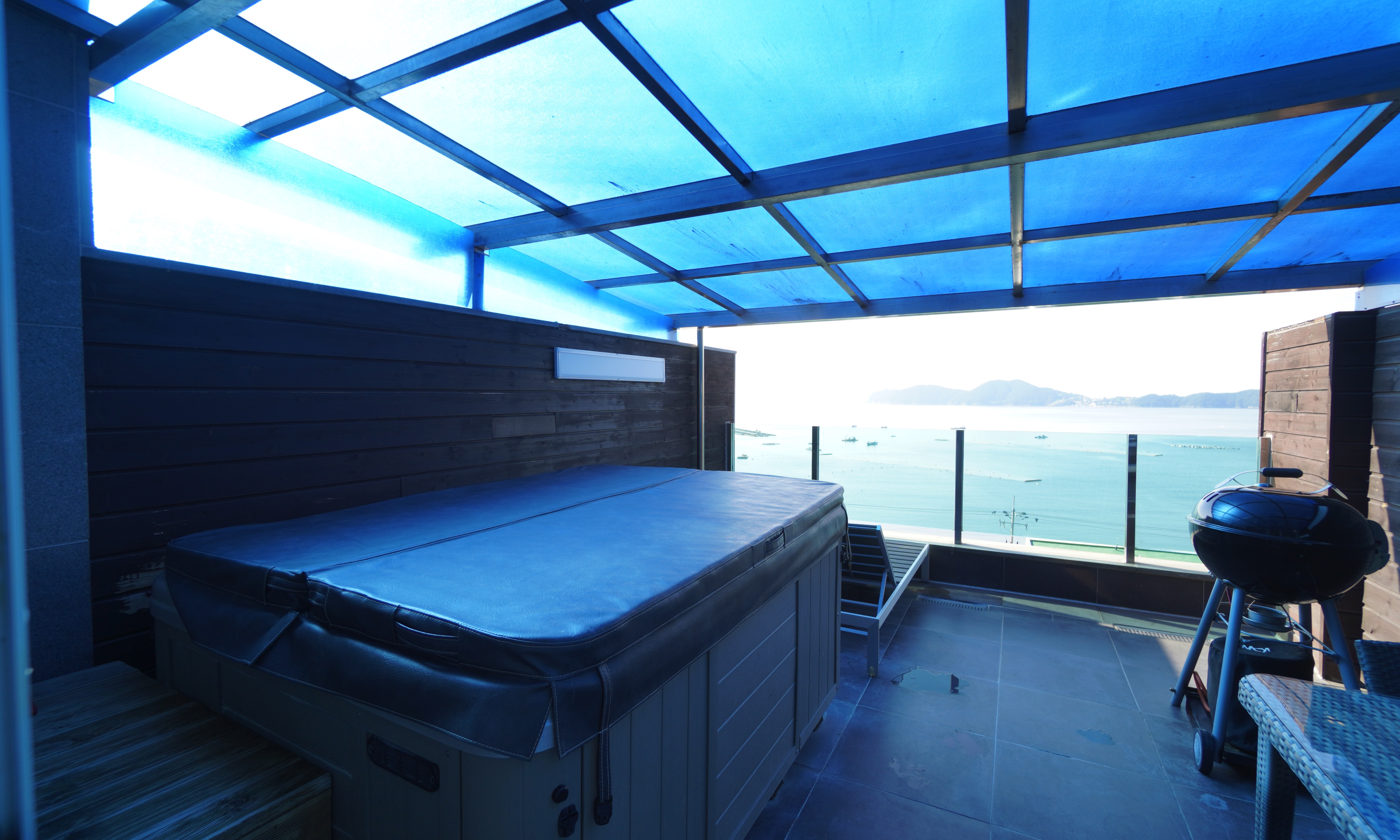 위의 사진처럼 테라스에 스파를 위한 시설과 고기를 구워 먹을 수 있는 그릴이 있다.